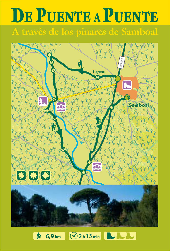 El camino sale de Samboal (1) en el extremo norte del paso de la carretera SG-342. En cuanto superamos las naves tomamos el camino de la izquierda. Justo antes de llegar al camposanto, al lado de una pequeña laguna (2) cogemos la rodada de la